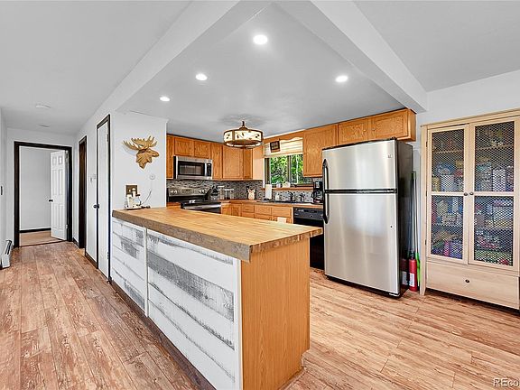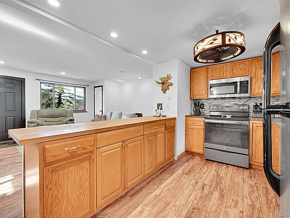 Welcome to this stunning remodeled home nestled in the serene area of Conifer. Boasting a charming blend of comfort & privacy. Enter the home & be greeted by a fully renovated kitchen featuring modern appliances, & updated bathrooms boasting stylish finishes. The beautiful wood floors on the main level provide an inviting atmosphere & complement the home's aesthetic. The main level primary bedroom offers convenience & allowing for a comfortable retreat. Take advantage of the efficient hot water heating system, ensuring warmth throughout the year. Situated on a tranquil 1.07-acre lot, this property offers a lovely mix of trees, providing privacy & promoting a sense of tranquility. The newer roof, deck railings, windows, & septic system offer peace of mind for years to come. Take in the breathtaking views of the National Forest from various points in the home & soak up the pleasant sun exposure that bathes the property. This home presents the perfect blend of nature & convenience.