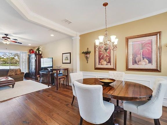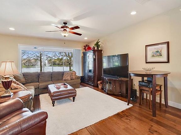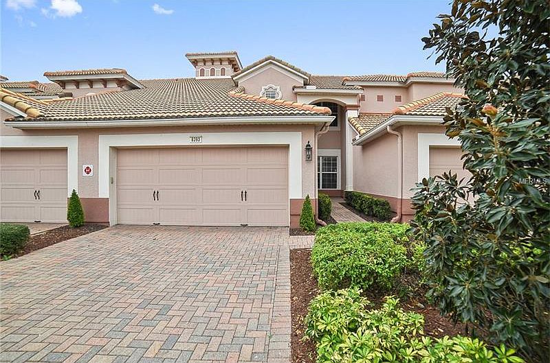 Don't miss this! A rarely available SOPHIA floor plan with water view. Well laid out 3 Bed/2.5 Bath with all bedrooms on the second floor. The master suite has a luxurious feel with accented trey ceiling, 3 windows looking over the water and double doors leading to master bath. Master bath has double sinks, abundant vanity space, full walk in shower and an oversized soaking tub, private commode, linen closet as well as a generous walk-in closet large enough for both his and hers. The first floor offers a spacious open plan that is ideal for entertaining and upgraded with gorgeous wood floors. Extend your living space outdoors thru triple sliding glass doors that open up to a large lanai with a peaceful water view. Kitchen has abundant counter space, cafe seating area and a raised bar top creating a perfect space for friends to gather. A convenient walk in pantry with lots of storage, a downstairs powder room and a separate laundry room complete the first floor. Unit has an attached 2-car garage with plenty of storage and attic space. The community clubhouse with multi-functional rooms utilized for a myriad of activities such as billiards, cards, crafts, socializing and more. Wind down and relax in the spa after a long day. The fitness center boasts state-of-the-art equipment. HOA fees include Internet, basic cable, trash, exterior bldg. maintenance, roof, pest control, gated entry with on-site guard and all amenities. Just a must see, call for a showing today before this amazing opportunity passes you by!