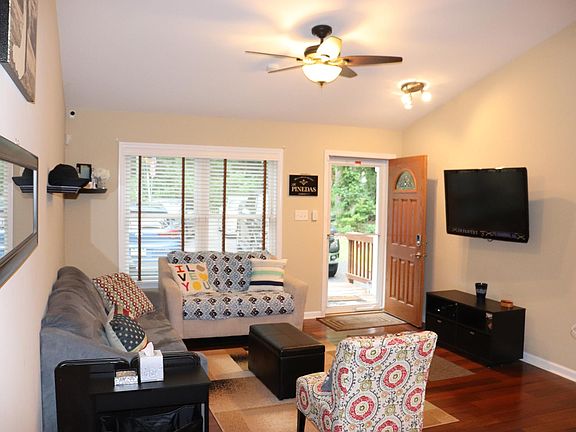 Great secluded single family home sitting on an acre lot, within walking distance to Lake Jackson. Features granite countertops, stainless steel appliances, wood flooring throughout the main level, large driveway, and a beautiful retaining stone wall that leads to the rear of the home. Home also has a bonus room in the basement that the owners currently use as a bedroom. Tenant responsible for all utilities. Pets on a case by case with $500 pet fee.
