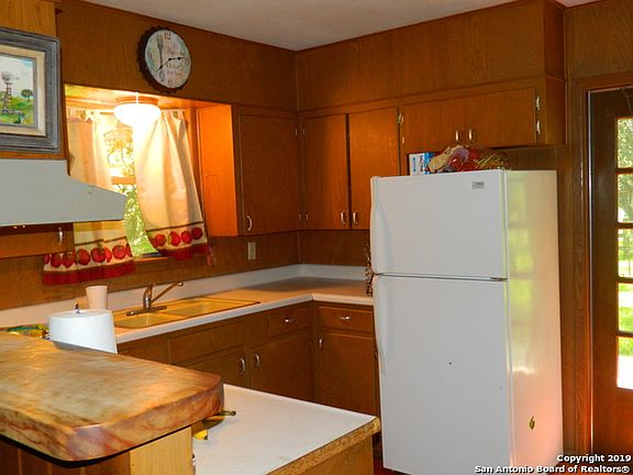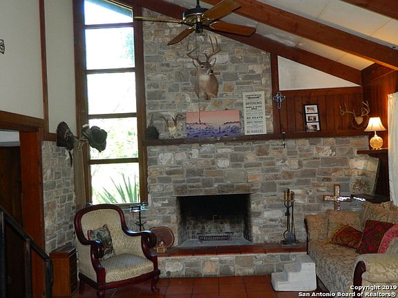 If you like country/ranch living, you have found your dream home! This rustic home has so much to offer. Huge yard, 2.62 acres, with plenty of space to be creative.Mature trees. High ceilings. Rock walls, Rock fireplace in the living room gives it that rustic feeling. Four covered parking spaces. Hill country living.Home also has Barns and Horse Ring. Horses, goats and chickens are allowed.