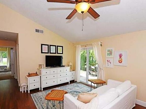 STUNNING 3 BED/2 BATH HOME, LOVINGLY MAINTAINED. REMODELED KITCHEN WITH NEW CABINETS AND GRANITE COUNTERTOPS, STAINLESS STEEL APPLIANCES AND NICE BREAKFAST AREA. VAULTED CEILINGS AND BRIGHT AND SPACIOUS LIVING AREAS. REMODELED BATHROOMS. MAIN BEDROOM HAS AN ADDITIONAL APPROX. 100 SQ FT. ENSUITE IMPACT GLASS OFFICE/SUNROOM. PRIVATE BACKYARD FACING CANAL LOT, NO REAR NEIGHBORS. LOW IMPACT GLASS ON EVERY EXTERIOR DOOR/WINDOW AND CUSTOM SOLID CORE INTERIOR DOORS. BEAUTIFUL TROPICAL VIEWS FROM ALL ROOMS. LUSH LANDSCAPING. BEAUTIFUL RECREATIONAL FACILITY WICH INCLUDES COMMUNITY POOL, TENNIS COURT AND BASKETBALL COURT Renter pays electric, water & cable/internet. Owner pays garbage pick up lawn maintenance.
