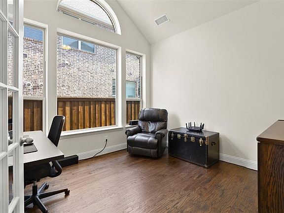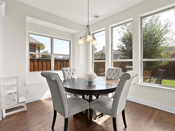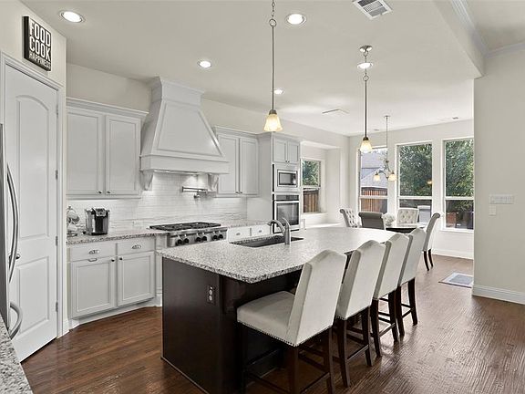 Beautiful 1 story home in Phillips Creek Ranch and Frisco ISD with brick & stone elevation and all the upgrades you are looking for! Fabulous open floor plan with 4 bedrooms, 3 full baths & study. Lovely hand scraped hardwood floors throughout. Gourmet kitchen with island, granite counters, upgraded stainless steel appliances & double ovens opens to family room with stone fireplace. Luxurious master suite with sitting area, large walk-in closets, separate vanities & shower. Relax under the extended covered patio which includes built in grill & stone fireplace perfect for entertaining & making s'mores. HOA includes pools, paths, playground & front yard maintenance. New roof installed August 2020. This is home!
