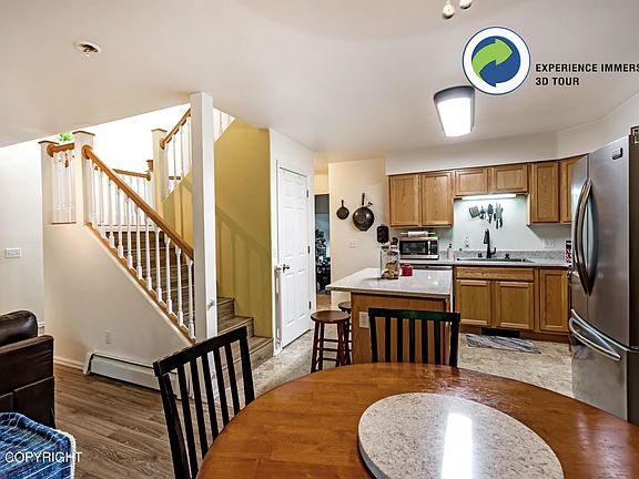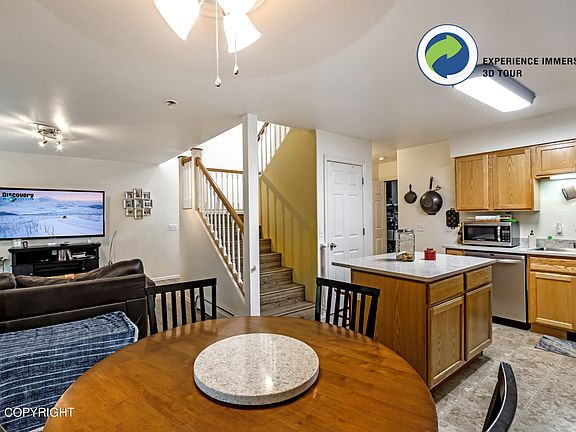 PCS season is here-want to live off base but still be close? Here is your chance! Discover the perfect blend of traditional charm and contemporary flair in this townhouse-style condo, located in a well-maintained, small community of condos with only four buildings and a total of 16 townhouses. The first floor features an open island kitchen that flows into the living area, making it idealfor entertaining or cozy family gatherings. This floor also includes a convenient half bath, laundry room, and a back door leading to a deck and a compact, fenced-in rear yard, perfect for outdoor relaxation. The second floor has an oversized owner's suite with a full bathroom, providing a private retreat for relaxation. Additionally, there are two more bedrooms and another full bathroom. Situated very close to JBER and the Muldoon and Parks Highway interchange, this property offers easy access to key areas, making commutes and travel a breeze. Nestled in its own cul-de-sac with a private driveway, this townhouse community provides a peaceful and secure living environment. All of this plus being close to all the amenities you need.