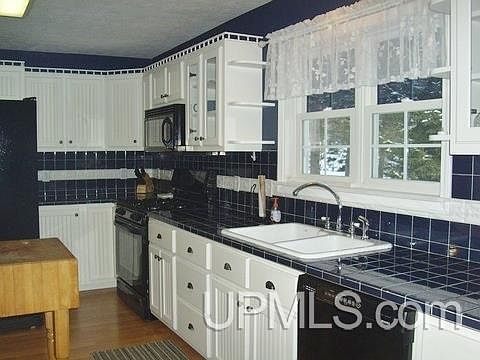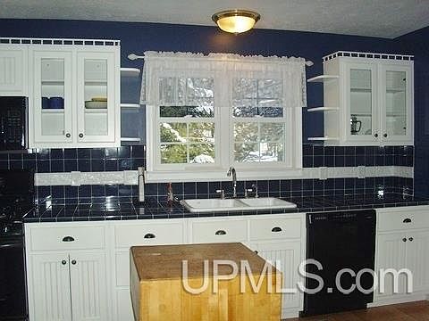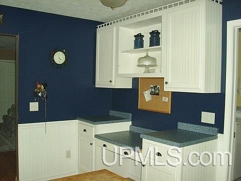 From the moment you pull in the circular drive you will appreciate the way this home is nestled in the trees. The living room boasts laminate floors and a vinyl bay window. The kitchen is a dream for the cook and for entertaining as it is spacious and features bright white bead board cabinetry, some glass fronted, ceramic tile counter tops, laminate flooring, and it opens to a spacious dining room with a vinyl patio door to the deck that overlooks the beautifully wooded back yard. The kitchen also has a built in desk area. Adjacent to the kitchen is the 5X8 pantry and the main floor laundry room. The master suite has hardwood floors, an impressive 10X6 walk-in closet, large master bath with ceramic tile, dual sinks, and a large low threshold shower. The master suite also has direct access to the back yard. Wait until you see the additional bath with it's pretty lilac sink and tub!! There is a huge garden spot beyond the 32X24 garage. Escanaba Township taxes top it off! This is a must see on your tour!