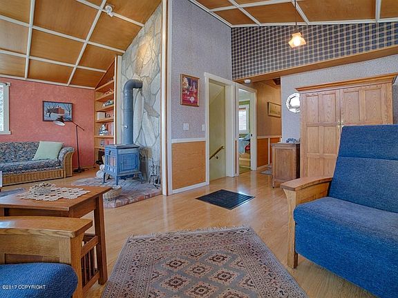 Charming, Unique & Peaceful Retreat!Situated on 1.90 acres, this home offers much to be desired with unrestricted usage. In a minimal wind area! (see more) Built in 1977, this home was built to 2 bedroom, 1.75 bath situated in 1,568 square feet. Uniquely laid out floor plan with custom renovations. High vaulted ceilings with framed oak panel ceiling, large windows for plenty of natural light, Blue Woodstock Soapstone woodstove, Hearthstone propane heater, in main large living area. Patio door leading to living room decking, great for relaxing or socializing. Upper level offers full bath, cozy bedroom with stenciled floor, small walk in closet and an ambiance to be desired by many. Lower level offers Custom Country Kitchen with pull outs using regional wood. Design taken from "The Man Without a Face" movie. Oversized breakfast bar, tiered custom countertops, Wall in oven, countertop cooktop, custom task and pennant lighting, dining area has artic entry to exterior, cedar wall, woodstove with local river rock, Ã,¾ bath offers cedar shower and oriental feel with Birch ceiling. 2nd bedroom currently utilized as a Den (owner removed the wall), however it could be re-established should you desire. Separate laundry room, all appliances included. Home currently has 4 separate heat sources, exterior offers several detached buildings including shed, potting shed, extra cabin for additional needs, oversized 2 car garage (960'), landscaped, several black currants, gooseberry bushes, strawberry, rhubarb, large lawn, see attached features list for additional detail. Call Today! Easy to Show!