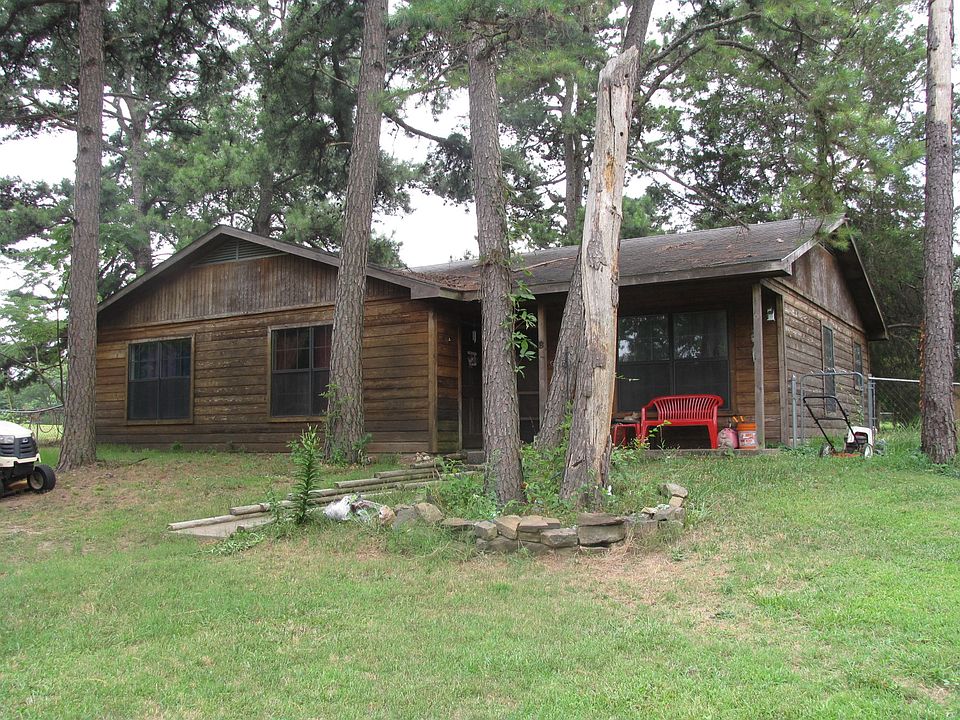 C-123 This rustic looking home has rough cut cedar siding and sits on 10 beautiful acres close to town. It has three bedrooms and two full baths.Custom built Oak kitchen cabinets and bathroom vanity's. Whirlpool bath tub with dressing room in the master bedroom. New air condition system. This property also comes with a 30x14 Tiny house that has a kitchen, bathroom and closet space. The 10 acres is mostly cleared and fenced. Located 1/2 out on Highway 100 East $175,000.00