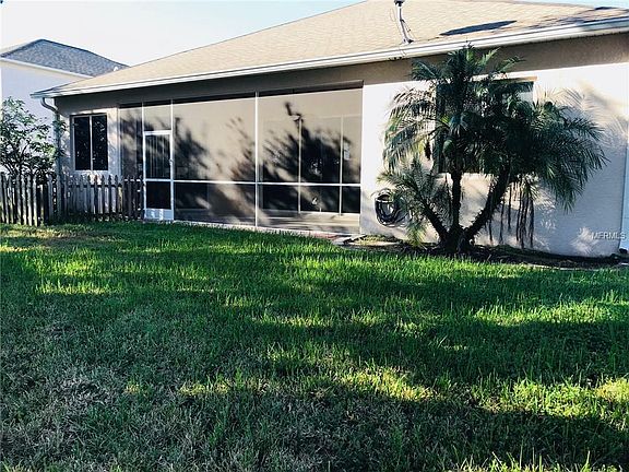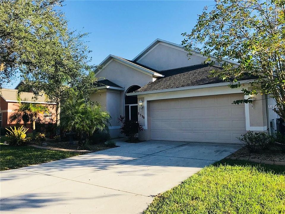 Welcome home! This house lives large. 3 bedrooms/2 bathrooms and a den with built in desk with 2 car garage. Features include tile flooring throughout the main areas set at the diagonal, high ceilings, recessed lighting, sliding glass doors and a screened lanai! Enjoy the screened front entry way with double glass doors. The master bedroom has tray ceilings, laminate flooring, a large bathroom with double sinks, tub and separate glass shower stall and two huge walk-in closets! New carpet installed in bedrooms and master walk-in closets. Fresh, neutral painted walls throughout the entire home! House includes easy install fitted hurricane shutters. Inside laundry room with washer/dryer. Lower HOA fees include community pool and no CDD! On the border of growing Parrish, FL. Easy commute around Tampa Bay.