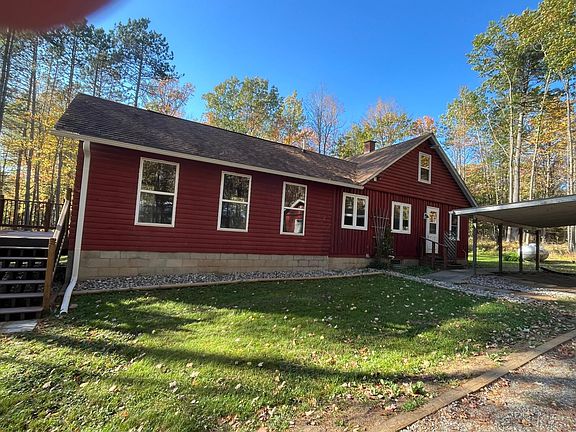 Situated in a highly desirable location across the highway from beautiful Arbutus Lake, this updated 3 bedroom, 2 full bathroom home offers added value of comfort and convenience for the outdoor enthusiasts. Enjoy being minutes from the public boat landing, multiple area lakes, and hundreds of acres of public land making this the ideal location for boating, fishing, and exploring. Situated directly on the ATV/UTV trail adds to your Northwoods fun! The home has seen several recent upgrades, including a new 200 amp electrical service, updated plumbing, four new windows, and a lift station in the basement. Inside you will find a cozy living space featuring a classic stone wood burning fireplace and a efficient pellet stove. A one car detached garage provides convenient storage for your toys and gear. Whether you're looking for a full time residence, weekend getaway, or rental opportunity, this property if perfect you.