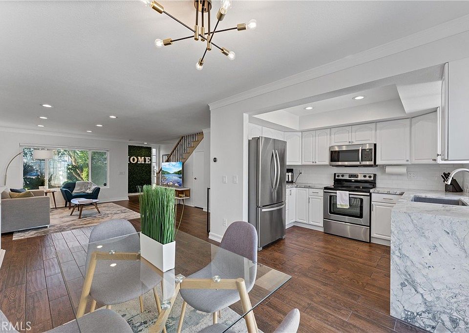 Coastal living at its finest! Run, walk, or bike less than a mile to the beach! Welcome to 8396 Dory Drive, a beautiful 2-bedroom home within Huntington Beach's gated community of Mariners Cove. With no one above or below, this private and open concept home has been fully renovated and is ready for its next lucky owner. The light and bright Kitchen is the heart of the home and boasts modern white cabinets, marble counters with a waterfall edge, and stainless steel appliances. The Kitchen also flows seamlessly into the living and dining areas as well as the charming and low maintenance Courtyard space - perfect for entertaining! A convenient 1-car garage with direct access off the Courtyard, powder room, and private laundry space complete the main level. Upstairs are two spacious bedrooms and an upgraded bathroom with a separate shower and soaking tub for ultimate relaxation. And just SOME of the high tech and luxurious upgrades included: Ring Doorbell and rear floodlight camera, Nest thermostat, Schlage Encode front door lock, garage door monitoring, smart lights, automated shades, double pane windows, on-trend tile flooring, custom light fixtures - the list goes on! Last, but certainly not least, this home boasts a PRIME, quiet location within the community, far away from any busy streets, filled with natural light, views of the greenbelt from the bedrooms, plenty of guest parking, and steps from the resort-like amenities which include a tennis court, pool, spa, and clubhouse. Best of all, Mariner's Cove is a centrally located neighborhood just minutes from the beach, pier and incredible shopping and dining options at Pacific City and Main Street! 8396 Dory Dr embodies the sunny coastal lifestyle that Surf City USA is famous for, so tour today and make this dream home yours!