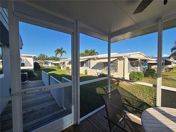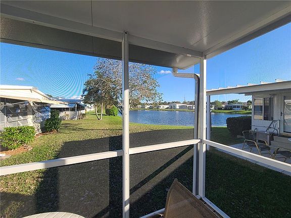 DO NOT MISS OUT! Rarely available! Spacious completely updated 2 bedrooms, 2 bathrooms 1 car garage manufactured home. Updated open kitchen lots of cabinets for extra storage. ALL IMPACT WINDOWS & DOORS. Laminate & tile flooring with carpet in the bedrooms. Spacious master bedroom. Updated bathrooms with walk-in showers. Washer & dryer. Bright home with lots of natural light. Large private screened patio & new wood deck overlooking a relaxing lake view. Great location in a remote quiet area. Garage roof done in 2020. A/C 2021. New doors. Extremely well maintained home with large driveway and car-port in addition to an oversized 1 car garage. Co-op NO land lease. CASH ONLY. 55+ community. Community pool & clubhouse. Conveniently located minutes to shopping & restaurants. MUST SEE!!