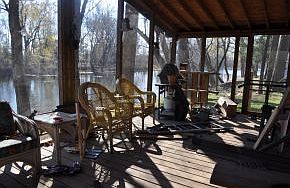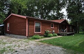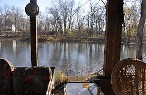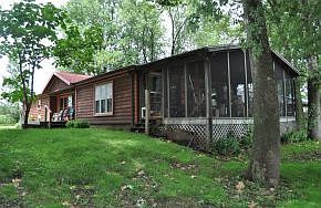 Picturesque view of river with 60' frontage! Very spacious Mfg. home w/log exterior, includes 3 bed, 2 bath, large family room, screened porch and drywall interior, ready for your occupancy, Plus, storage bldg.