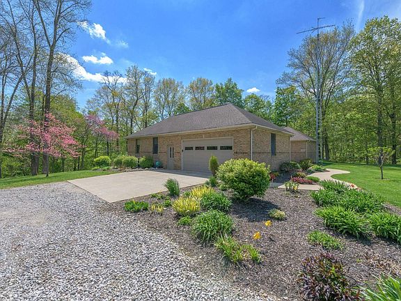 This uniquely custom built home on a walkout basement has AMAZING written all over it! An AMAZINGLY designed home, land with AMAZING views, and access to the AMAZING Wildcat Creek. All on acreage where a lot of time and money was spent to maticulously landscape the surrounding area of the home. When you walk through the front door you will be greeted with beautiful beechwood flooring and amazed at the fresh open concept with the custom woodwork throughout. You will find wide doorways and solid oak doors throughout the interior where Red Oak and Black Locust trees resourced from the land were used to provide the custom trim work. Several windows in the living, kitchen, and dining area provide an abundance of natural light with a majestic view overlooking the creek. In the tiled kitchen you will find B&L custom cabinets wired for underneath lighting and pull out cabinets & drawers. The walk in pantry and granite countertops complete this beautiful kitchen. The main level master features a huge walk-in closet and a secret cedar lined storage closet used to store crafts. The basement provides a huge rec room with a wood burning stove, 2 additional bedrooms with walk in closets, additional storage, and a workshop area. The mechanical room is also plumbed for a kitchen. To enjoy the outdoors this home comes with a screened in porch with a stamped concrete floor. The open deck and swing provides some of the greatest sunsets you will ever see. At night the gas lamp purchased in New Orleans and the gas fire pit on the deck light up the night for hosting parties and family gatherings. A tiled laundry room, oversized garage, whole home sound system, and an outdoor shower are some additional features that make this home AMAZING. Come take a look for yourself and you too will be AMAZED!
