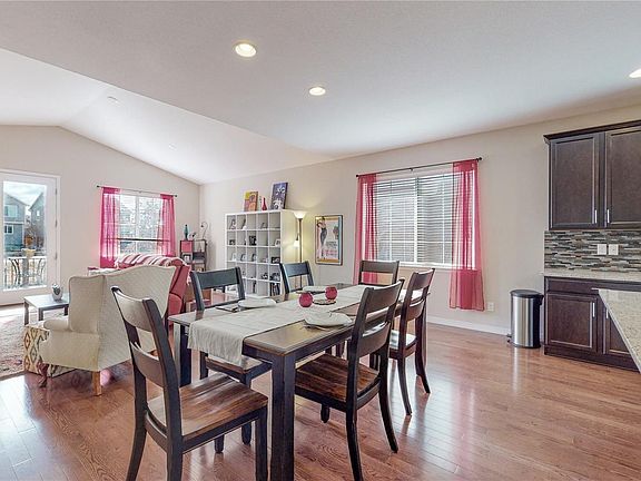 Wow! Gorgeous Ranch style home at end of cul-de-sac. Rich hardwood flooring throughout. Vaulted ceilings create a spacious, open, and bright feel. Gorgeous kitchen with granite counters, island workspace, customized tile backsplash, oversized cabinetry with upgraded crown molding, gas range, stainless appliance suite, pantry, and upgraded hardware throughout. This open concept is perfect for entertaining with easy access of kitchen, dining, family, and expansive deck. Quiet and luxurious master retreat on back of home. Main floor laundry so no lugging laundry up and down stairs. Huge full basement with high ceilings that are already drywalled for future expansion. Very private, luxury lot backs to open space, trails, park. Big composite planked deck. Solar lease of $25/mo to be assumed by buyer. Great house that won't last long! Buyer to verify all.