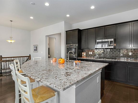 Beautiful hardwood floors, abundant natural light and an elegant foyer greet you, as you enter. Two spacious bedrooms, full bathroom, and 1/2 bath occupy the front wing of the the home. Create unforgettable memories in the large living room that is centered around a cozy gas fireplace. The adjacent kitchen is a chef's dream and features s.s appliances w/ gas range, double oven, and huge center island. Wake up to open space views in the master retreat boasting elegant tray ceiling, convenient butler pantry, his & hers walk-in closet and spa-inspired en-suite bath. Enjoy the game in the fantastic finished basement with massive wet bar, ample rec space and full bathroom. The beautifully landscaped backyard backs to open space and is the perfect venue for dining al fresco on the covered patio.