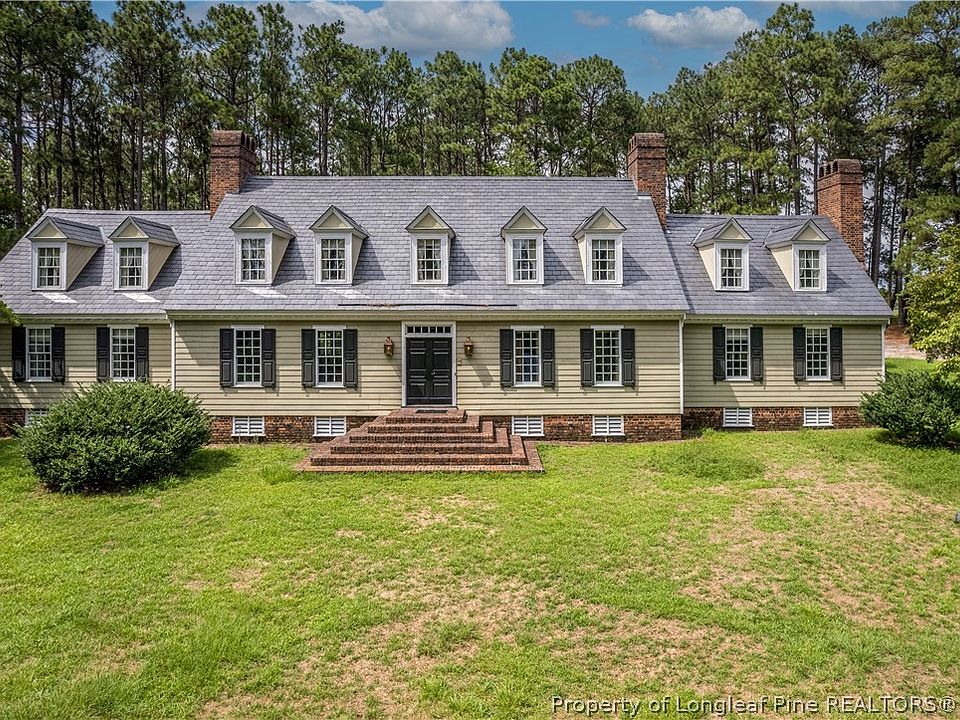 LINDEN - 5BR/6FBA/2HBA. This magnificent treasure of a home will sweep you off your feet . offers +- 36 acres including the 7 acre stocked pond with a dock . The home is a blend of charming colonial simplicity & superb craftsmanship. The home has 6 fireplaces , hardwoods throughout all of the living areas. Walk out basement for storage and play room. Convenient to Raleigh , Cary , Fayetteville and I 95 . This is a one of a kind custom home. Offers a Family room, Country Kitchen, Study, Wet bar, Master Bedroom is down stairs, Formal dining room, Formal living room , Over 1500 sf of attic storage, Extra Kitchen off garage breeze way for entertainment events, Great for a private Bed and Breakfast or your own private retreat . Home is priced to sell AS IS , an amazing value and ready to move in. Has been a high end rental the past few years .