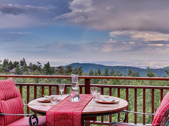 You have to experience it to really understand the views from this home! Unobstructed views of the front range, relax on your large deck to enjoy the city lights, sunrises and daily 'take your breath away' moments! This great mountain home is less than 15 minutes to C470, but feels like a million miles away in this quiet location at the top of the world. Located on a beautiful one acre lot that features a paved driveway, plenty of extra parking, large fenced dog run, play area, volleyball court and plenty of spaces to relax and entertain. The home is everything you could want for mountain living, updated with views from every room, two cozy fireplaces, kitchen overlooking the yard and views, formal dining, master suite with heated tile floors, and a huge garage with built in work bench. This is your relaxing getaway that is only 25 minutes to Golden and easy access to all of the Denver area and the best of mountain living in Conifer and Evergreen. Don't miss this opportunity!