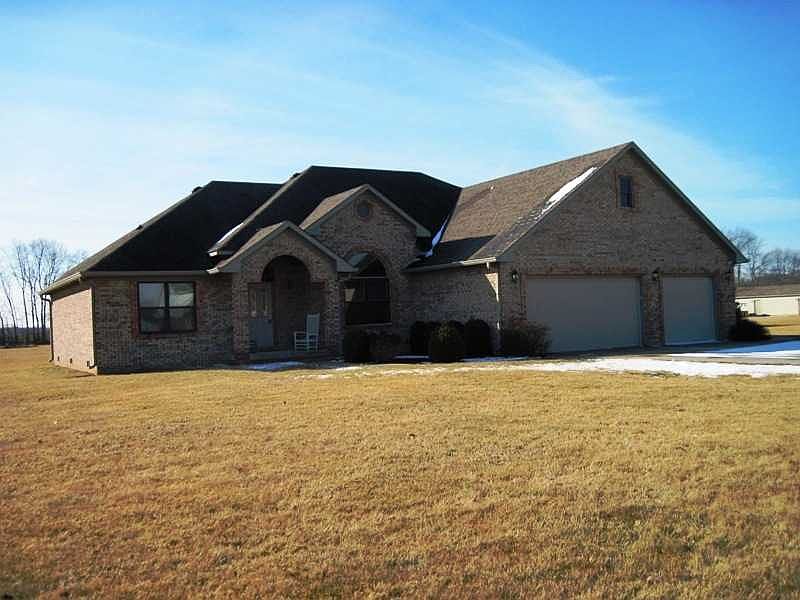 Pristine one owner brick home on one acre in quiet community. 4 bedrooms 2 full baths, nice kitchen with range/oven dishwasher, microwave, refrigerator. Breakfast room, sitting room,Formal Dining Room,Vaulted ceiling and fireplace in great room! Main level master suite w/large walk-in closet. 3 car garage,mini-barn w/overhead door! Entire home freshly painted! Excellent location! Must see!! Six panel doors throughout!