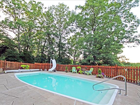 Custom built 3 Bdrm, 2 Bath home on 1.5 acres with an Outstanding View. 34x16 fiberglass Inground Pool has slide & solar cover--fenced separately from level yard. 3 Garage spaces & 2 driveways. Home is handicap accessible w/oversized doorways/hallways & handicap chair lift to lower level & yard. Newer roof, HVAC, water htr, water softener & heat pump. Custom Anderson crank out windows. Large foyer w/Hardwood flr & coat closet opens to massive Great Rm w/exquisite tongue-n-groove vaulted wood ceiling, floor-to-ceiling stone fireplace & sunken atrium/plant area. Vaulted Dining Rm w/Hardwood flr & bay/arched windows. Vaulted Kitchen features custom cabinets w/pull-out shelving, built-in roll-top planning desk, ceramic tile flr, pantry & stainless steel appliances. Huge Master Ste has private access to deck, walk-in closet, whirlpool tub, knee-space make-up area & private water closet. Walk-out Lower Level offers rough-in, egress windows & workshop. Ceiling fans & recessed lighting thruout