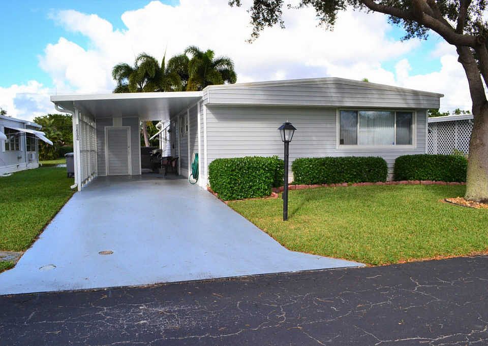 Move-in ready 2br/2ba waterfront double wide coach in popular 55+ West Lakes of Boca Raton Mobile Home Coop. This gorgeous home features a beautifully updated kitchen with Kraft Maid wood cabinets, corian counters, glass backsplash, and integral sink. New in 2018 - kitchen appliances, full size washer/dryer, 16 SEER A/C and all new ductwork. Updated bathrooms have wood cabinets, newer toilets, and tile floors. Beautiful laminate flooring in living areas and bedrooms. New sub floors in kitchen, dining room and into living room. Enjoy beautiful lake views from the Florida room and custom built outside patio. Florida room has insulated ceiling and windows. This home also has newer double pane windows and hurricane protection for windows. Insulated carport roof was done in 2017. See more..