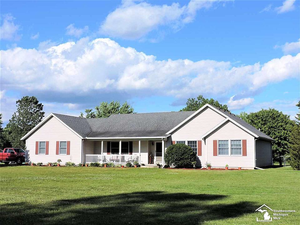 Looking for rural - the wait is over!! Convenient and Economical Ranch Home Offers 3 beds/ 2 full baths, and 3.17 ACRES OF LAND!! A kitchen you can knock out a meal for the whole family in!! Granite counters/stone backsplash/fully eqiupped/breakfast bar area! Pantry! Bring those full size dining outfits! Large living room w/rural views! Master bed with walk in closet and separate jacuzzi tub/shower! Separate non walk through laundry room! Attached 2.5 car garage PLUS Large Shed Outbuilding! Fenced Back Yard for enjoyment with stone patio and firepit area! The rest of the acreage is open! Tree lined out front and back!
