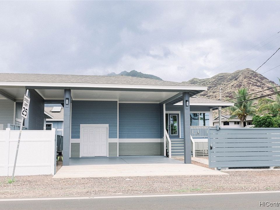 Brand new single family home, CPR, has 4 bedrooms, 2 baths with 9 ft. ceiling, 2-car carport with 12 ft. ceiling and additional parking space. A beautiful plantation style home with open floor layout of living/dining room and modern kitchen with large center island. Split AC in all rooms, luxury vinyl plank flooring, front/back covered lanai, and fence around the house with security sliding gate. Enjoy the mountain views or walk to the beautiful beaches of Waianae Coast.