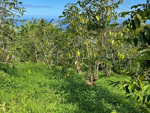 This is a leasehold property. The home burned down several years ago and Lessor has approved a re-build. This coffee farm is professionally managed by Hala Tree and they have the right to this years crop. This area has some of the best soil in Kona. Panoramic coastline and Kealakekua Bay views are truly breathtaking. Many mature fruit trees including Sharwil avocados and other varietals, navel oranges, lychee, starfruit and more. There is a concrete building pad ideal for a temporary yurt or campsite while you build a home. The greenhouse is ideal for all your horticultural endeavors. 10,000 gal. water tank set upon a concrete foundation.