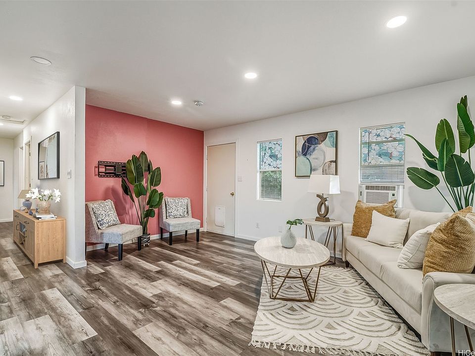 Don’t miss this opportunity to own the perfect entry-level home in Makaha! This one checks all the boxes: 3 beds, 2.5 baths, window AC units throughout, to keep you cool and comfortable year-round. Tasteful upgrades, with luxury vinyl plank flooring, modernly renovated bathrooms with a bathtub and a shower stall option. Two large bedrooms offering ultimate comfort, one being the primary bedroom with a full bathroom, the other with a private half bathroom. Step outside to the ideal-sized backyard, framed by lush greenery for everyday relaxation. Enjoy the spacious sun deck, perfect for stargazing or rooftop BBQs with family and friends. This home also comes equipped with LEASED SOLAR PANELS, giving you stability and peace of mind when it comes to your monthly electric expense, approximately $310.00 per month. When searching for an entry-level home, the “must-haves” usually stop at affordability and comfortable interior space. Here, you get so much more! Come see this gem today and secure your place in Makaha for years to come!