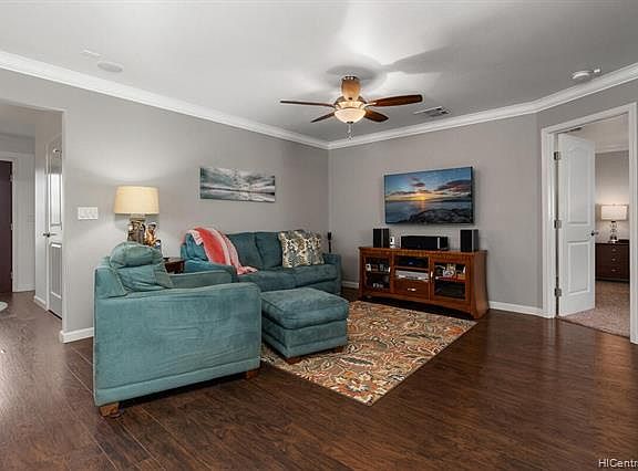 This Gorgeous Makaha Customized Home is beautifully decorated & waiting for you! Fantastic Upgrades incl Surround Sound, Crown Moulding, Stainless Appliances, Plantation Shutters, Master Suite Bath with Double Vanities, Walk in Shower, Porcelain Tile, Huge Walk in Closet, Beveled Mirrored Doors, Central AC, Expanded Dining Area, Extended Concrete Poured Stamped Lanai, Engineered Pergo flooring, Upgraded Paint, Extra Laundry Cabinets, Seeded & Irrigated Lawn, Solar Hot Water, 18 Panel Net Metering Owned Photo Voltaic, Upstairs Family Room with Amazing Ocean & Sunset Views.
