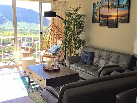 Enjoy serene mountain and ocean views from this beautifully remodeled 1 Bd/1Bth condo at Makaha Valley Towers. The home features a fully upgraded kitchen with quartz countertops, a large apron sink, and brand-new stainlesssteel appliances. Additional highlights include central A/C, luxury vinyl flooring, mirrored closets, and an upgraded bathroom. This desirable end unit comes fully furnished, offering both privacy and comfort. Residents can take advantage of the 24-hour security, heated swimming pool, BBQ area, and meticulously maintained resort-like grounds. Conveniently located just minutes from beaches, surfing, hiking, and golfing, with easy access to Koolina and Kapolei. Additional Details: Electricity, water, sewer, and cable included. 1 open parking space (parking sticker $50, refunded upon vacating). No smoking, no pets allowed. $25 application fee Make this peaceful retreat your next home! Enjoy serene mountain and ocean views from this beautifully remodeled 1 Bd/1Bth condo at Makaha Valley Towers. The home features a fully upgraded kitchen with quartz countertops, a large apron sink, and brand-new stainlesssteel appliances. Additional highlights include central A/C, luxury vinyl flooring, mirrored closets, and an upgraded bathroom. This desirable end unit comes fully furnished, offering both privacy and comfort. Residents can take advantage of the 24-hour security, heated swimming pool, BBQ area, and meticulously maintained resort-like grounds. Conveniently located just minutes from beaches, surfing, hiking, and golfing, with easy access to Koolina and Kapolei. Additional Details: Electricity, water, sewer, and cable included. 1 open parking space (parking sticker $50, refunded upon vacating). No smoking, no pets allowed. $25 application fee Make this peaceful retreat your next home!