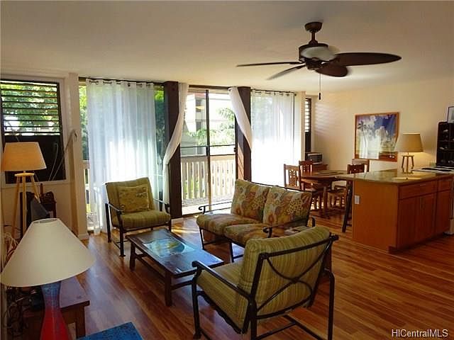 Ground level, beautifully remodeled unit in pristine condition in the Gated community of Makaha Valley Plantation! The cooks kitchen boasts new cabinets, granite counter tops w/ extended peninsula for more space to prepare meals. The bathroom offers new vanity, fixtures, ceramic flooring and walk in shower with ceramic tile surround and glass enclosure. Spacious bedrooms offer new closet enclosures with mirrored sliding doors. Finishing off this residence is laminate flooring throughout kitchen, living, and bedrooms, along with new light and ceiling fan fixtures. The community offers 2 beautiful pools, BBQ area, and plenty of guest parking. Hurry as this will go FAST!