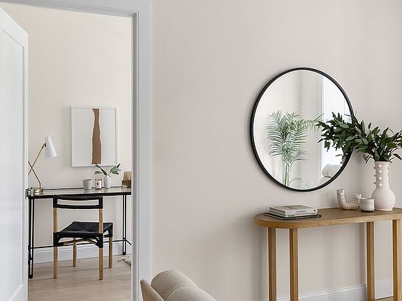 As you enter the brownstone through the landmark approved custom french door with Emtek black brass handles you are greeted with the home's original interior vestibule which has been lovingly refurbished. The restored wainscotting in the interior stairwell is a nod to the building's original details.