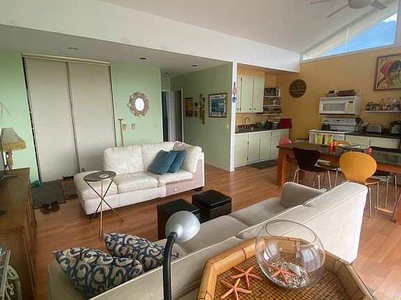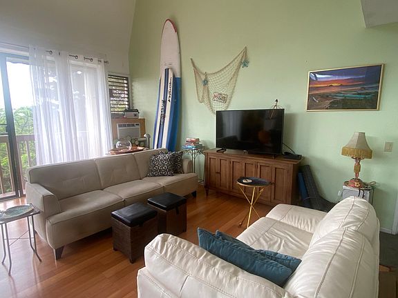 It's a lovely and spacious fully furnished condo within The Makaha Valley Plantations. It faces the back so there is plenty of privacy. It has high airy, vaulted ceilings and with nearly an entire wall of windows, there is plenty of sunlight. The view is of mountains and trees, and if you peer through the branches, you can see the ocean. It's 1.7 miles down the hill to Makaha Beach Park, a local surfing beach. 1.1 miles to Makaha Valley Country Club, and 2 miles to a small strip mall for you basic needs. There is a security gate upon entrance and on grounds is a swimming pool, hot tub, tennis/pickle ball courts, and a BBQ pit. It's a peaceful oasis to contemplate your next step or a safe place to leap into the Hawaiian life. I'm flexible with a 6-12 month lease. No smoking. No pets. There is a parking place included just steps away from the building. It's a 3 flight walk-up. Outside of rent, all you are responsible for is Hawaiian Electric.