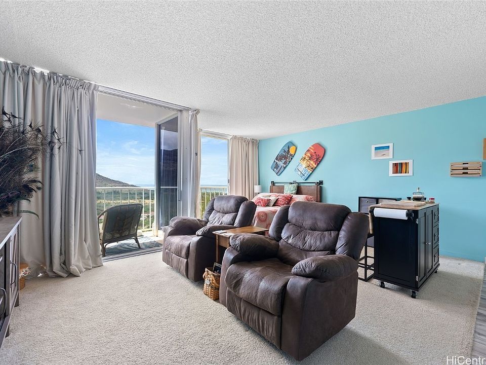 OCEAN VIEWS, FURNISHED, CORNER UNIT WITH OUTDOOR BALCONY. Welcome to Makaha Valley Towers, just minutes from Makaha Beach. This charming studio with a full bathroom offers a tranquil retreat on Oahu’s Makaha coast. Recently painted and updated with vinyl flooring, this unit is move-in ready. Enjoy the mountain and ocean views from your private outdoor balcony. Amenities include 24-hour security, multiple laundry facilities, a BBQ area, and a heated pool at the heart of the complex. Plus, all utilities—water, sewer, central air conditioning, electricity, cable, and internet—are covered in the maintenance fees!