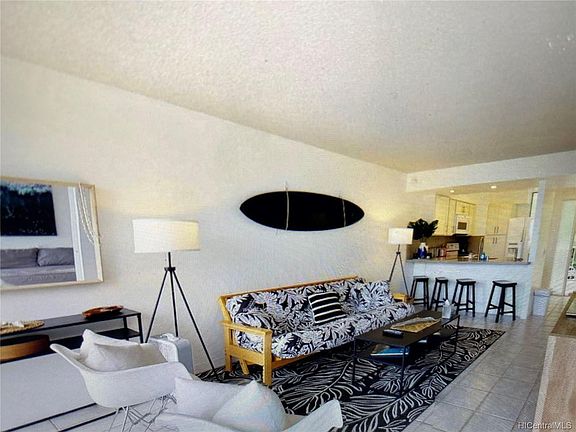 Makaha Valley Towers located up Makaha Valley with majestic mountain and ocean views! Fully Furnished unit, with towels, linens, cookware. Ready to move in. Surf inspired theme which is perfect for Makaha. The beach is a couple minutes down the road from MVT complex. Unit was just remodeled with all new applicances, countertops, paint. 7th floor. 2 elevators. Community laundry. One open parking spaces comes with unit. $75. Registration fee for automobile. All utilities are included, basic cable and WIFI, too.Security is tight at complex. All tenants must abide by Covid 19 Rules and Regulations.