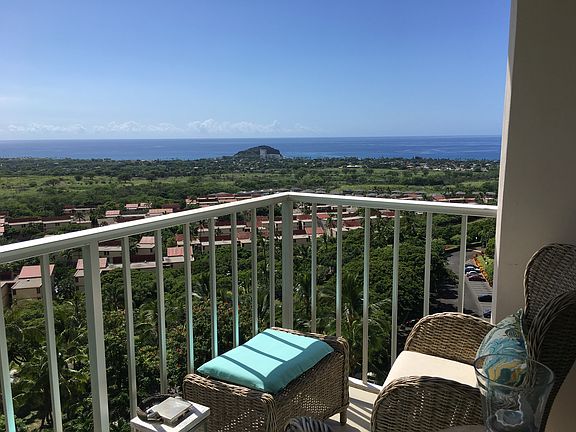 Beautiful sunny condo remodeled kitchen suite with dishwasher and wine cooler. Restoration Hardware of Beverly Hills and Pottery Barn furniture. Lots of specialties and fully equipped and turn-key. End unit with full view of the valley, mountains, golf course, ocean. Many amenities include community laundry, BBQ and picnic area, heated pool. Maintenance fee includes all but your wifi. Full view lanai. Very secure community, sold furnished. Lovely, well maintained, clean unit.