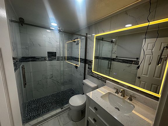 This stunning unit has been completely remodeled and freshly painted with updated touches such as mirrored closets, new ceiling fans and deco trim. The sophisticated and elegant bathroom finishings add to the exclusive living that you'll experience from calling this place home.