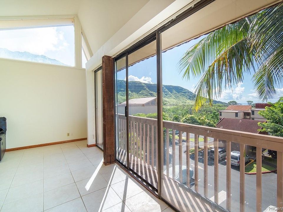 Enjoy island living in this rare 3 bedroom/1 bathroom condo in Makaha Valley Plantation with lush surroundings, palm trees and regular peacock sightings. Makaha Beach is 2 miles away, the bus stop is close and Waianae offers many adventurous hiking trails. This vacant top floor, corner unit includes vaulted ceilings, small lanai, mountain and peek-a-boo ocean views, 2 assigned parking stalls, new carpet in bedrooms, lots of natural light, valley breezes and is pet friendly. Amenities include 2 large pools, 2 kiddie pools, jacuzzis, tennis court, basketball courts, BBQ areas, gathering areas, community laundry in a gated community with 24/7 security guard.