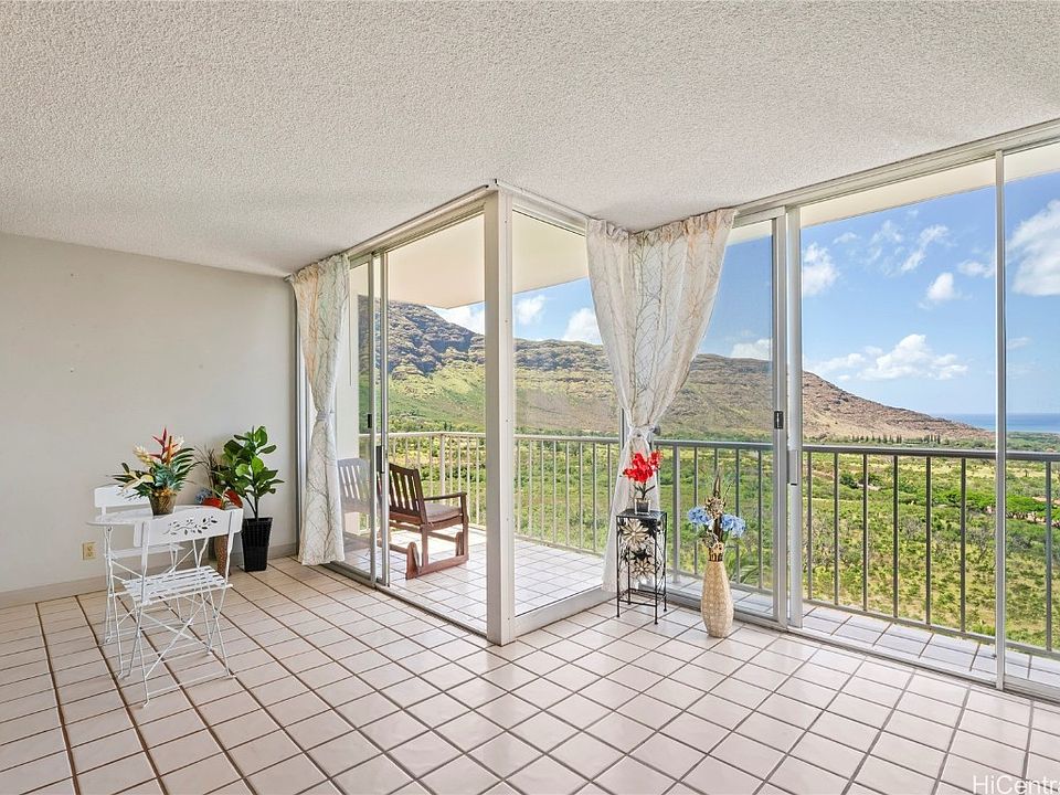 Corner end unit capturing the stunning views of the Waianae Mountain ranges and ocean. Gated community with a 24-hour security service patrol. Maintenance fees cover heated swimming pool, BBQ areas, electricity, water and sewer, internet and cable, and ample guests parking. Close to Bus stop and a half mile away from the World Famous Makaha Surfing Beach.