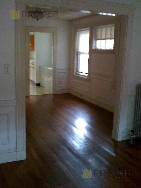 Landlord lives above. large living room, large dining room, eating kitchen, one bathroom, new refrigerator, new lights through the apartment, double glass windows, the floor is insulated underneath, and 3 months ago outside walls insulated on all 3 floors. Gas heat. Plenty on the street parking