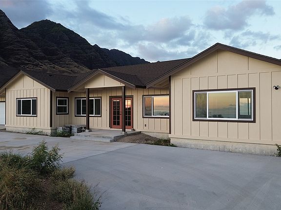 Nestled on a scenic hilltop, this exquisite 2024-built home offers a perfect blend of modern elegance & breathtaking natural beauty. Step inside to a bright, open great room with vaulted ceilings, recessed lighting, & a cozy gas fireplace — ideal for unwinding on cool mountain evenings. The heart of the home is its expansive chef-inspired kitchen, featuring abundant counter space, a gas stove, & ample cabinetry — perfect for both entertaining & culinary pursuits. With three spacious bedrooms, this home offers plenty of room for privacy & comfort. Two luxurious bathrooms provide tranquil spaces to relax, with high-end finishes & generous layouts. Energy-efficient low-E dual-pane windows ensure year-round comfort, while panoramic ocean & mountain views provide an exceptional backdrop — a rare combination making this home a true retreat. While the home is complete, it does await a few finishing touches, including landscaping, gas hookup, & some small final details — offering a unique opportunity for the new owner to add their personal stamp to this already stunning property. This is more than just a home; it's a chance to embrace a lifestyle surrounded by the beauty of Makaha Valley.