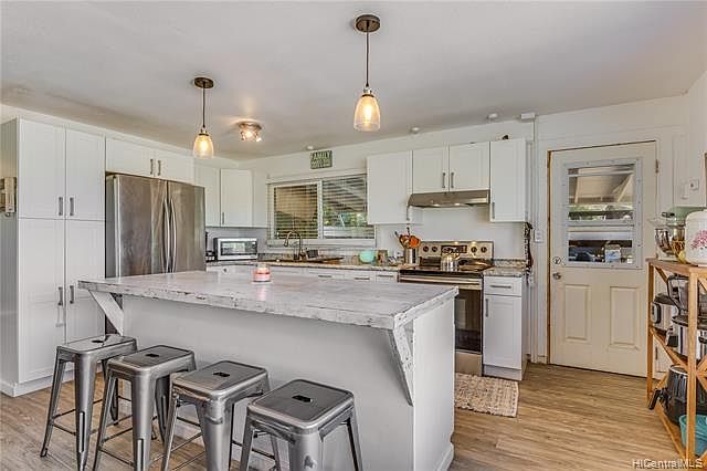 Own this gorgeous 1 acre property in beautiful Makaha Valley, country living. Fully fenced yard for privacy, newly built wall, Lots of space for entertaining on this huge landscaped yard. This 4 bedrooms & 1.5 Bathrooms home has been newly renovated, brand-new kitchen and bathroom, upgraded plumbing and electrical. New windows, refurnished ceiling, upgraded Laminate flooring and 2 AC split systems throughout the home. Much more to offer, come and see your home!