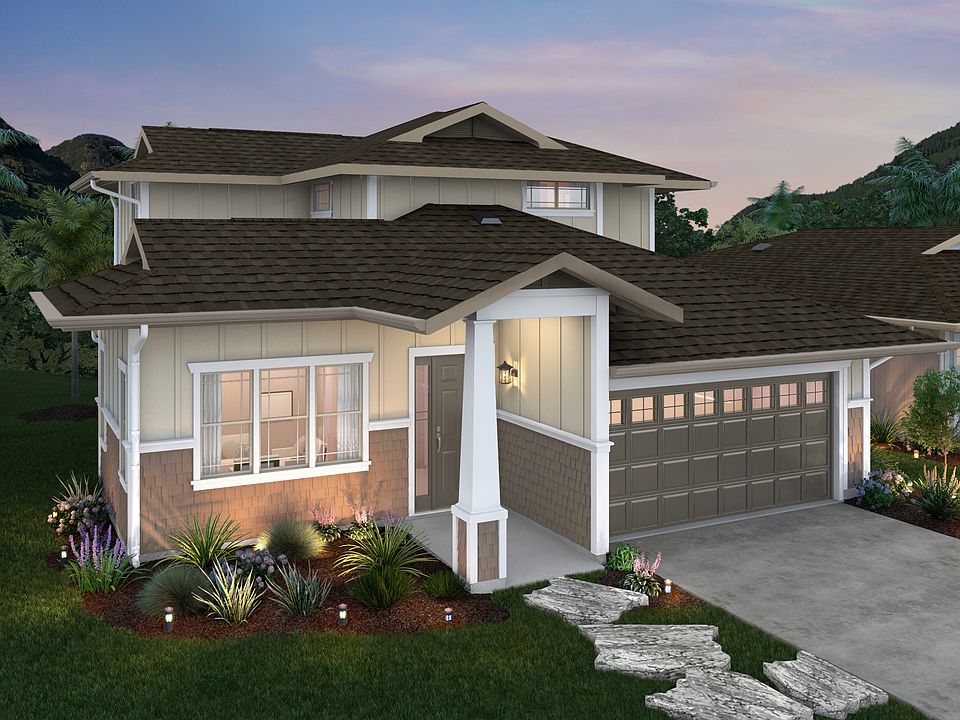 Pahelehala includes: Large entry porch and formal entry, glass stone countertops in kitchen, sliding glass door in family room, walk-in closet in master bedroom, double lavatories in master bath, glass stone countertops in bathroom, cast iron tub/shower, large format porcelain tile wainscot in bathrooms, mirrored closet doors, 9' ceilings, second attached dwelling unit with galley kitchen & separate washer/dryer, separate entrance for attached dwelling unit, side door in garage, 80 gallon solar water heater, ceiling fan junction boxes in all bedrooms and living room, split a/c options and an optional washer/dryer with appliance package.