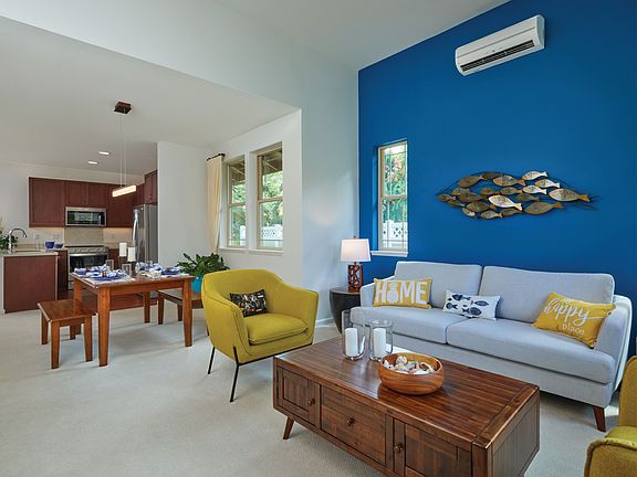 Hinakokea includes three (3) architectural exterior styles: Cottage, Plantation, Craftsman. Includes the following: Formal entry, large porch, glass stone countertops in kitchen, sliding glass door at family room, large walk-in closet in master bedroom, double lavatories in master bath, glass stone countertops in bathroom, large format porcelain tile wainscot in bathrooms, cast iron tub/shower, powder from with pedestal lavatory, Kohler plumbing fixtures, 9' ceilings on 1st floor, ceiling fan junction boxes in all bedrooms and living room, side door in garage, 80 gallon solar water heater, split a/c options and an optional washer/dryer with appliance package.