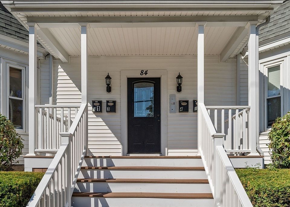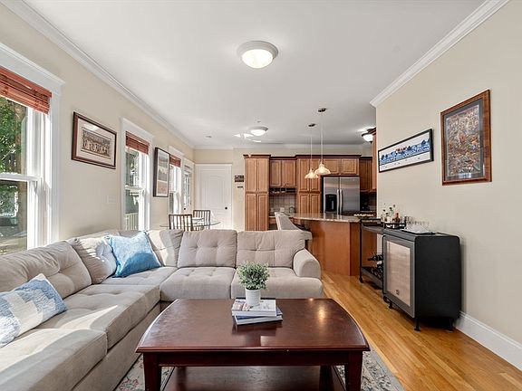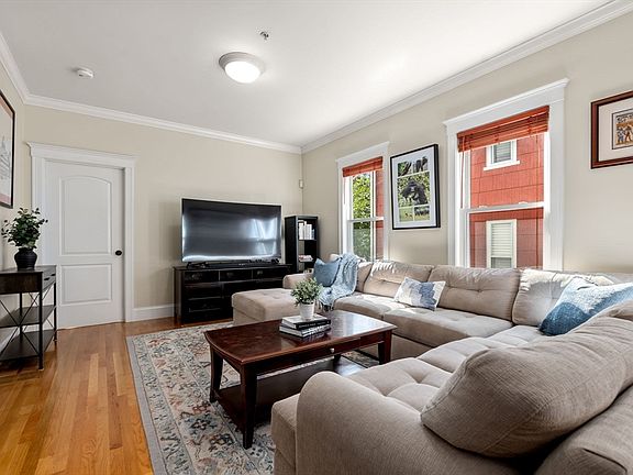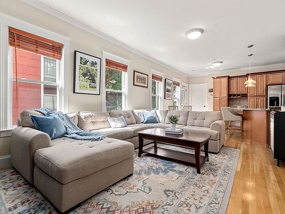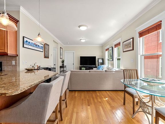 Gorgeous 2bed/2bath condo with 2 parking spaces, tucked away in a charming neighborhood just steps to Moody St! This thoughtfully designed home features an open living space w/ stunning chef's kitchen w/ SS appliances, granite counters, gas stove, eat-in breakfast bar & dining area and tons of cabinet space. Primary bedroom features en-suite bath w/jacuzzi tub, WIC, plus bonus closet. Light-filled second bedroom with bay window & spacious WIC. High ceilings & gleaming hardwoods throughout, and stay cool in the summer with central A/C! Outside, enjoy your morning coffee on your private porch w/exclusive side entrance that leads to a shared outdoor space w/picnic table shaded by mature trees. Pet-friendly, 2 deeded off-street parking spaces and laundry in unit, plus full storage space in the basement. Premier Waltham location just 2 blocks from Moody for endless shops, restaurants, and parks! Close to buses, the Charles River path, the commuter rail to N. Station & more!