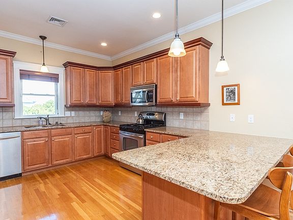 Live your best Urban life in the Suburbs! This gorgeous 3 Bedroom, 2 Full Bathroom, top-floor Two-Level-Penthouse-Condominium, features an amazing open floor plan, with a large, eat-in kitchen with maple cabinets & granite countertops, stainless steel appliances and a very spacious living room. Furthermore, it has a large first floor bedroom & office/guest bedroom space, a full bath and a large back deck on first floor. The second floor has two generous bedrooms, with a full bath and walk-in closets. Additional features include high ceilings throughout, gleaming hardwood floors, newer electric, newer plumbing, newer windows, newer roof, newer heat & central A/C and a large, private storage area in the basement. This property is located close to many restaurants, shops, parks, public transportation, the Commuter Rail, Rt.128, and the Mass Pike. ***Open Houses Friday, April 12th from 4-6 PM, Saturday, April 13th and Sunday, April 14th from 1:30-3:00 PM***
