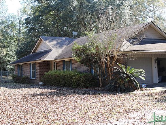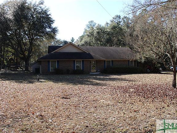LOOKING FOR A HOME IN THE COUNTRY? HOW'S A BRICK HOME ON A 2 ACRE CORNER LOT, HUGE FENCED BACK YARD, ONLY 30 MINUTES FROM SAVANNAH, AND NO HOA's SOUND.? Single level floor plan, 3 BR, 2 1/2 baths, formal dining room, living room, breakfast nook with bay window, laundry room (w/d included), 2 car garage, & covered rear porch. Attic storage above garage & covered porch. Living room offers a vaulted ceiling with exposed beams, recessed "eyeball" lights, and fully functional wood burning fireplace with floor-to-ceiling stonework. Perfect for relaxing with loved ones after a long day at work. Ample kitchen counterspace with large ceramic sink, built-in wall oven, microwave, dishwasher, and refrigerator. All kitchen appliances are stainless and are included. Corner lot on left of house is included. (total 2.02 acres) About 1 1/2 acres is fenced in back yard!! Property also has a shallow well, septic tank, storage shed, trampoline, playset, and covered BBQ pit in fenced area of back yard.