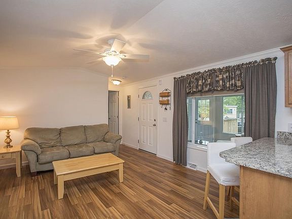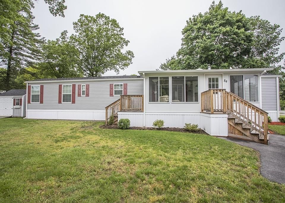 Price to sell now! Great opportunity to own this picture perfect 2015 single wide home at Pine Hill Estates, a 55+ adult community in Raynham. This delightful home boasts an open floor plan with easy care vinyl flooring, cathedral ceilings thru out and a fully applianced kitchen with sparkling granite counter tops. Two spacious bedrooms and two baths provide for lots of privacy when friends and family visit. Central air conditioning and the washer and dryer included. Outside, you'll find a fabulous10x25 deck with a 10x20 three season room to maximize your living space - relax inside with your favorite libation or enjoy barbecue on the open deck. Just off the deck you'll find a 10x10 vinyl shed for all your storage needs.This is one home you'll not want to miss - there is nothing to do - just pack you bags and get ready to move!
