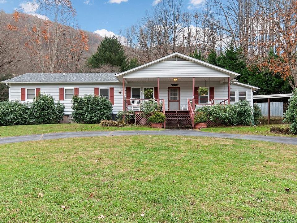 Single level living in the heart of Maggie Valley! 2BD/2.5BA singlewide with site built structure added onto it with 2 master suites that have tub/shower combos, spacious great room with gas fireplace, dining room, kitchen with breakfast bar, single carport, 2 outbuildings for storage, huge front and back yard. Easy completely paved year-round access. Only minutes to downtown Waynesville and approx. 20 minutes to Asheville! (Brand new electric hot water heater installed 12/4/2020)