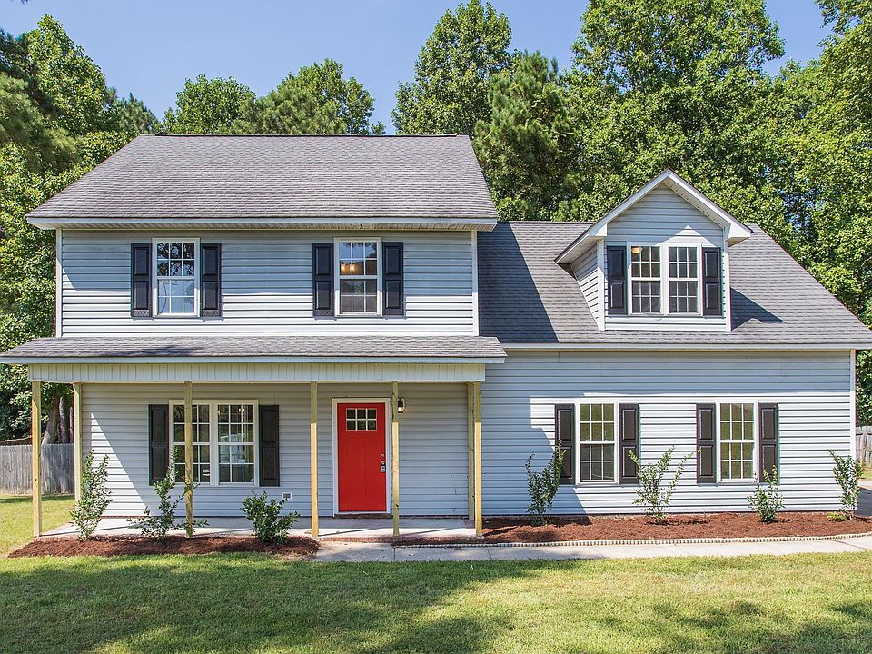 Beautiful renovated home with a rocking chair front porch and tons of upgrades! Updated kitchen with new granite counter tops, tile back splash and stainless steel appliances. Updated bathrooms with granite vanities and tile floors. New luxury vinyl plank floors throughout the main living area and new plush carpet in the bedrooms. Large bonus room on second floor with multiple closets could also be used as a large 4th bedroom. Back deck looking over private backyard with tons of space backing up to woods.