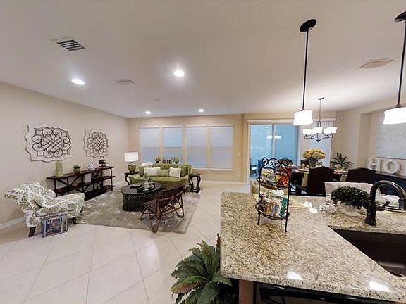 The Amalfi takes after the sun-drenched Italian coastline that inspired its name! Step inside to the comfortable living room, kitchen, and dining room, an open-concept area that makes excellent use of space and instantly makes you feel at home. The generous kitchen island with built-in sink and dishwasher is an effortless hub for entertaining guests. Set out cocktails and appetizers as friends and family move from the island barstools to mingle about. This entire living space overlooks the side patio, which is just the right size for an additional dining table and loveseat. Just off the kitchen/dining area is the master suite, a relaxed and inviting escape that youll appreciate day and night. Start your morning with a cup of coffee in the attached covered patio that leads into Amalfis backyard, which wraps around the side of the home. An alluring walkway and landscaping join the two outdoor spaces. At the end of the day, pamper yourself in the exquisite master bathroom, which boasts dual vanities, a spacious shower, and a walk-in closet.At the front of the home, a second bedroom with nearby bathroom is the ideal retreat for guests visiting for the evening or the weekend. Perfect for those seeking privacy! This active lifestyle features on site restaurant, clubhouse, resort style indoor/outdoor pool, sports pavilion, poker lounger, card playing room, spa room, gym, bocce/pickle/tennis ball courts, outdoor event space, ball room and MORE!!